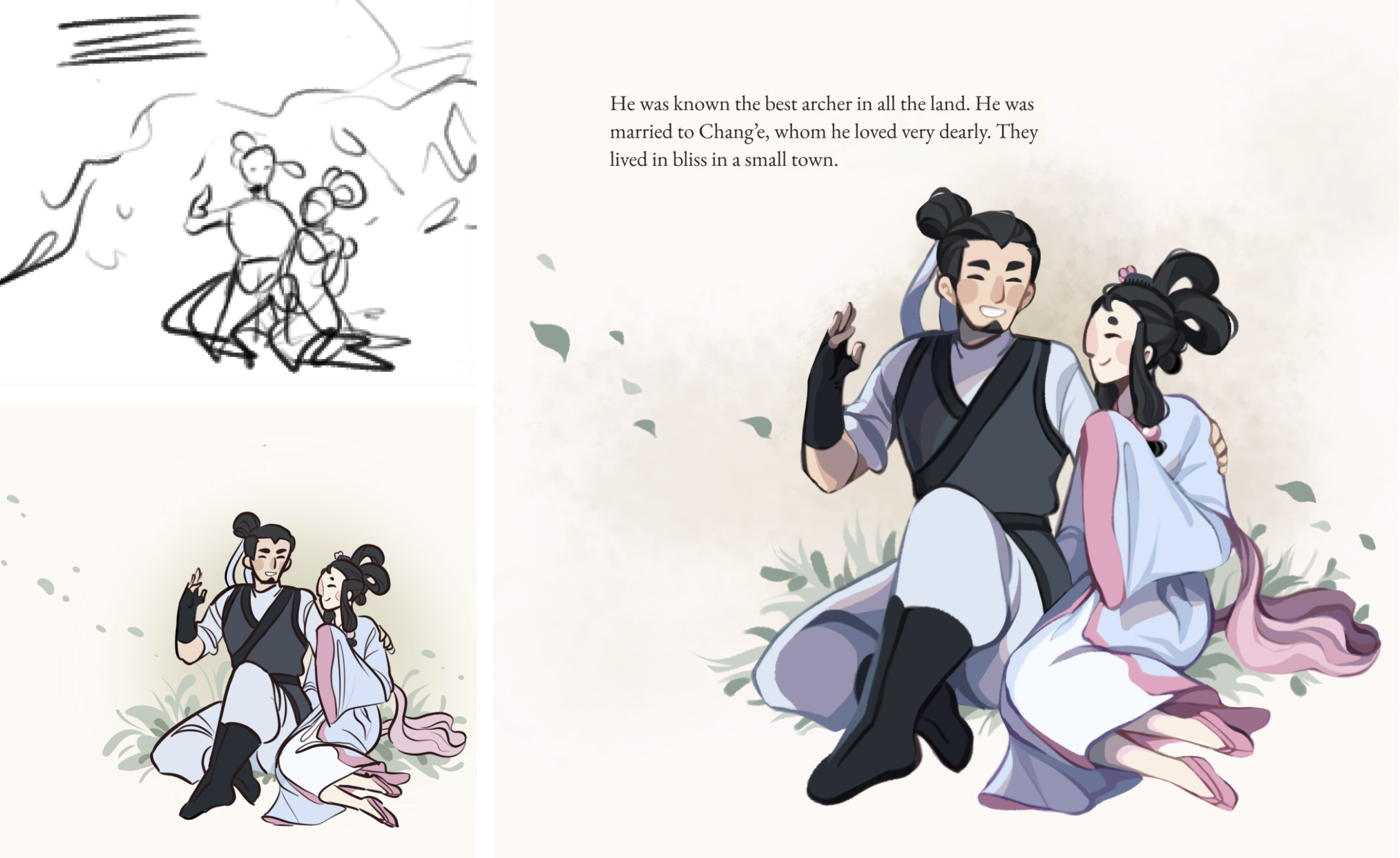 My identity as a first generation Chinese immigrant and artist has shaped every aspect of my life. I wanted to illustrate a story that lets me honor and share my roots with a younger audience.I chose to create a children's storybook version of Chang’e, which is a famous old Chinese folktale. It revolves around Chang’e, who became immortal through her love and now resides on the moon.